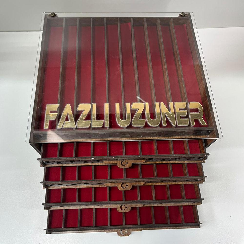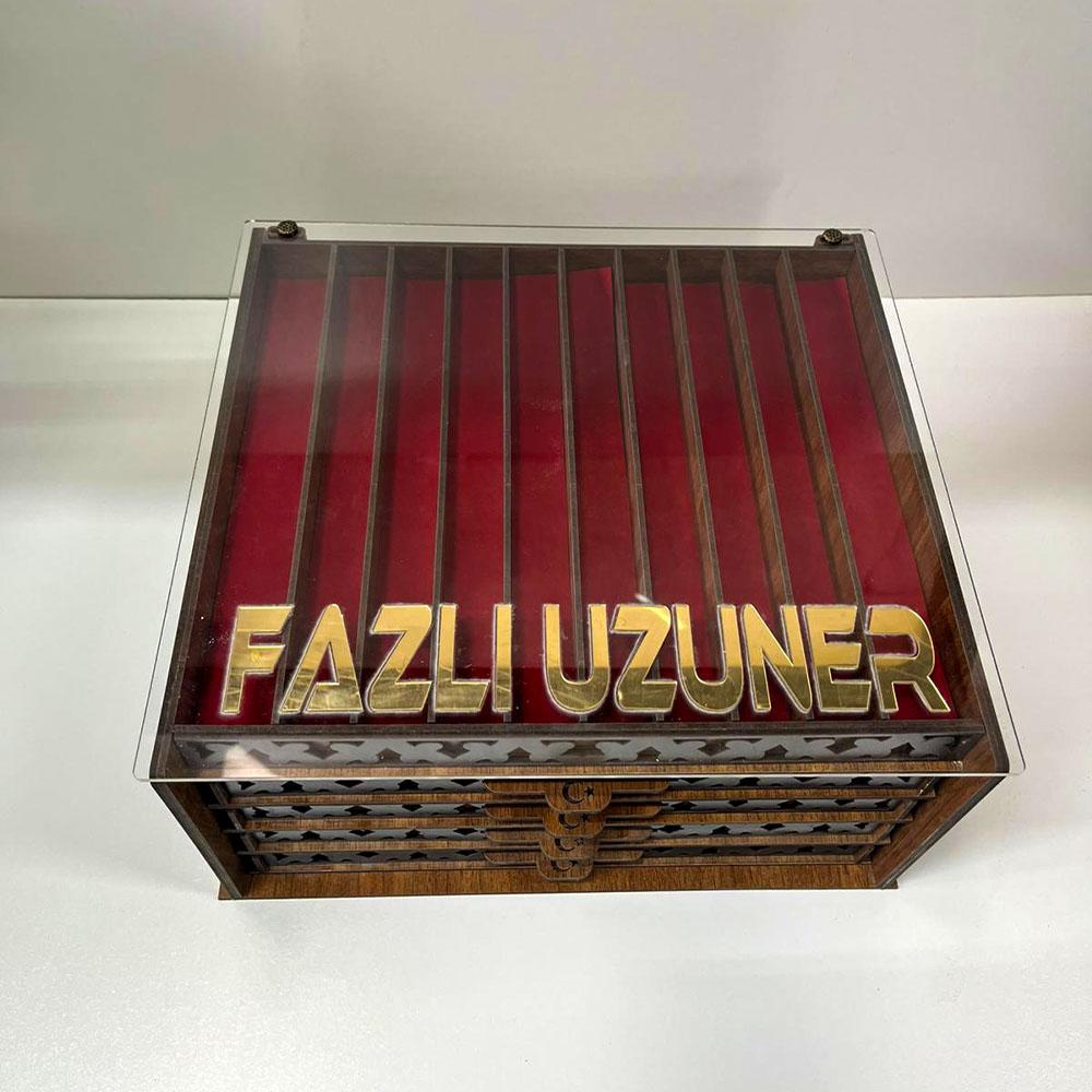 30'lu Ay Yıldız Motifli Çekmeceli Kişiye Özel Ahşap Tesbih Kutusu
