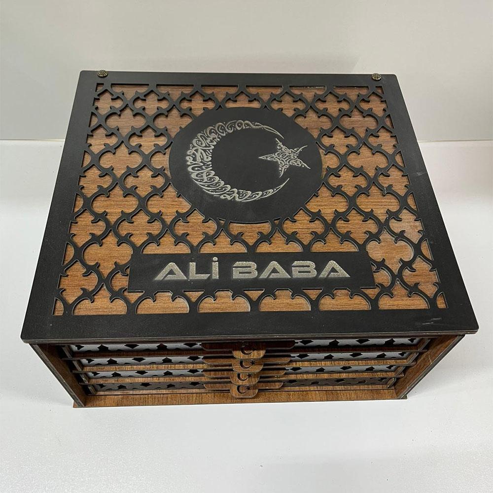 Ay Yıldız Motifli Çekmeceli Ahşap Tesbih Kutusu
