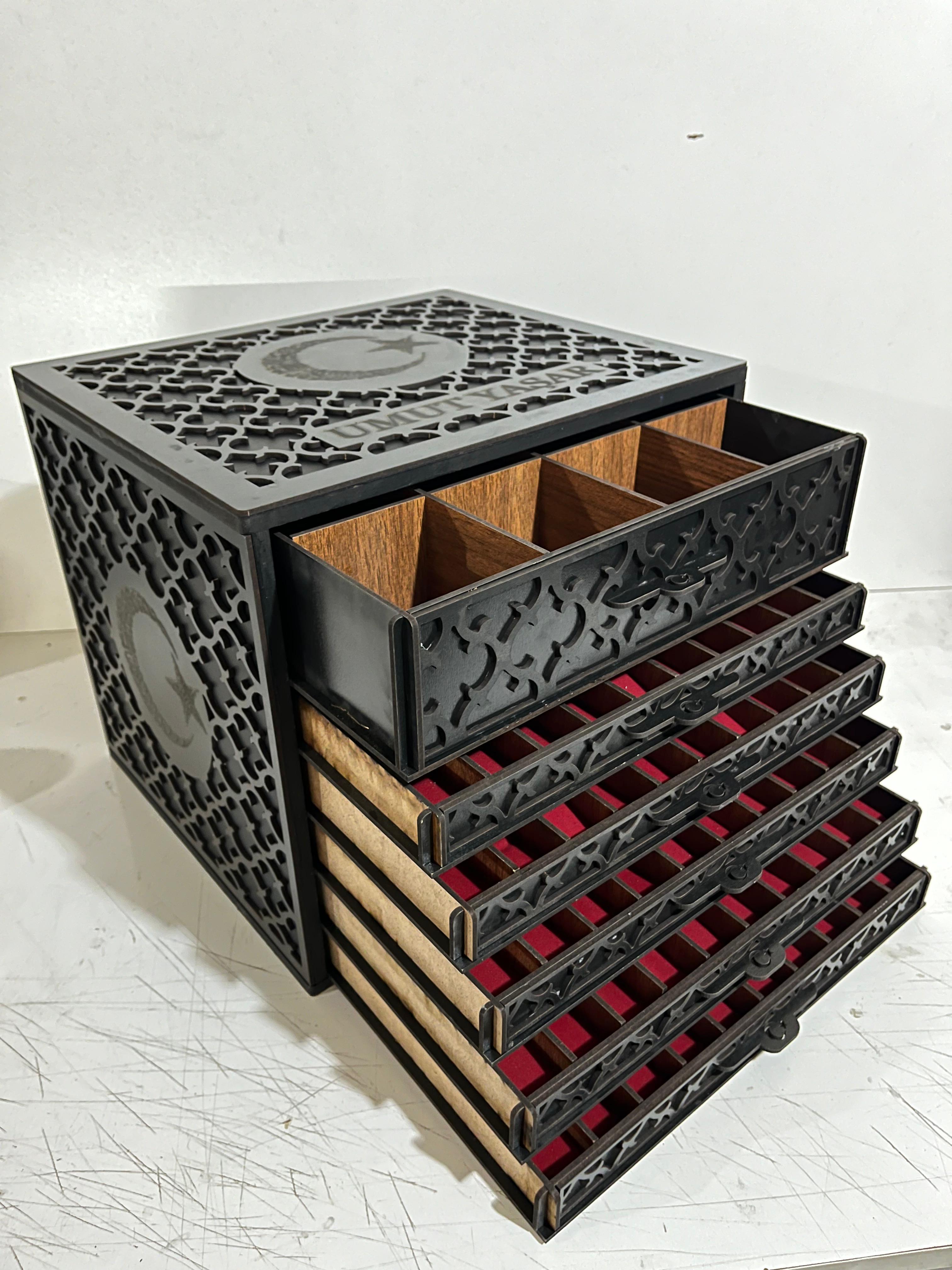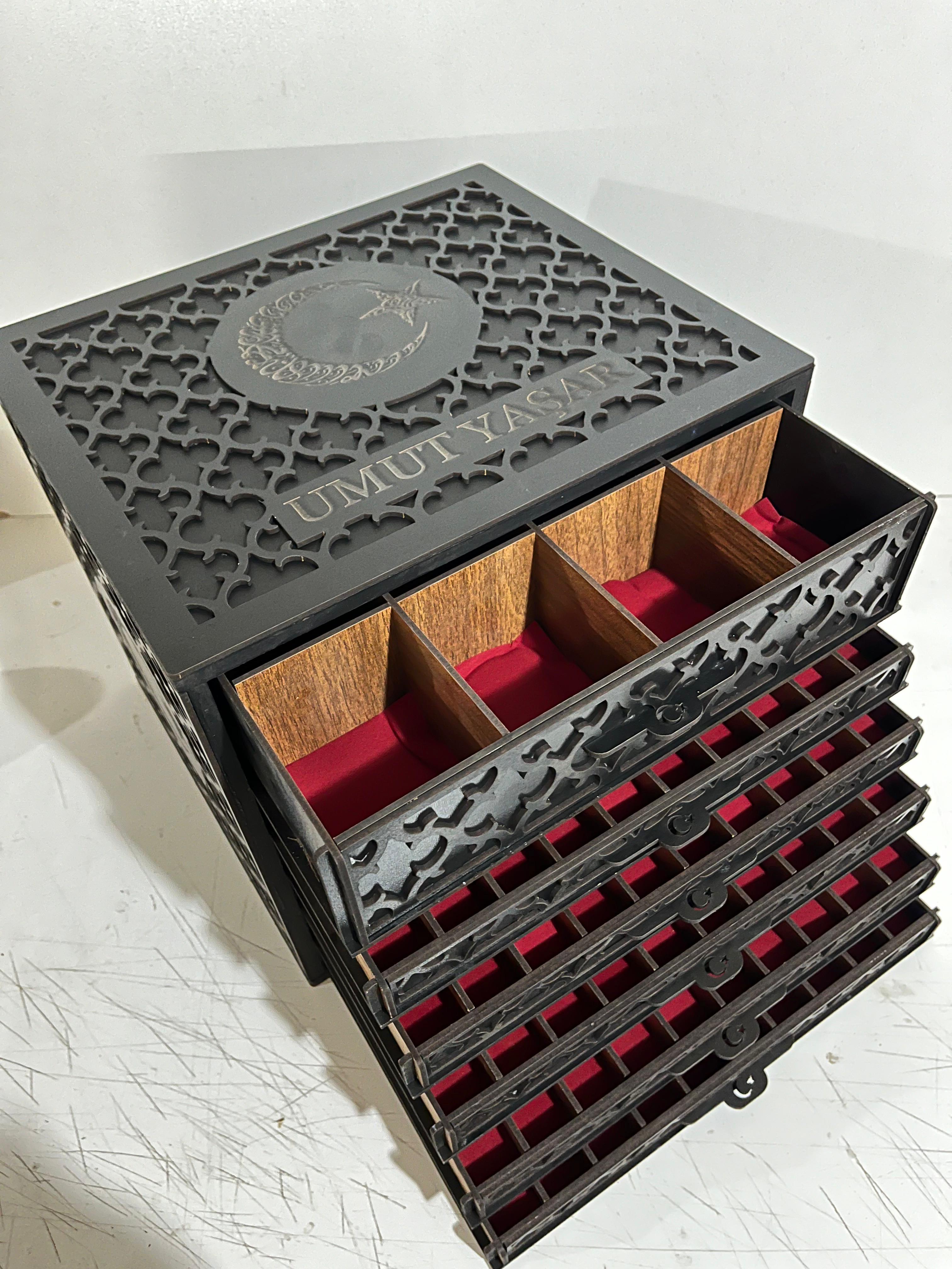 - Ahşabın doğal dokusu ve sıcak tonları ile estetik bir görünüm sergileyen bu kutu, hem şıklığı hem de dayanıklılığı bir arada sunar.