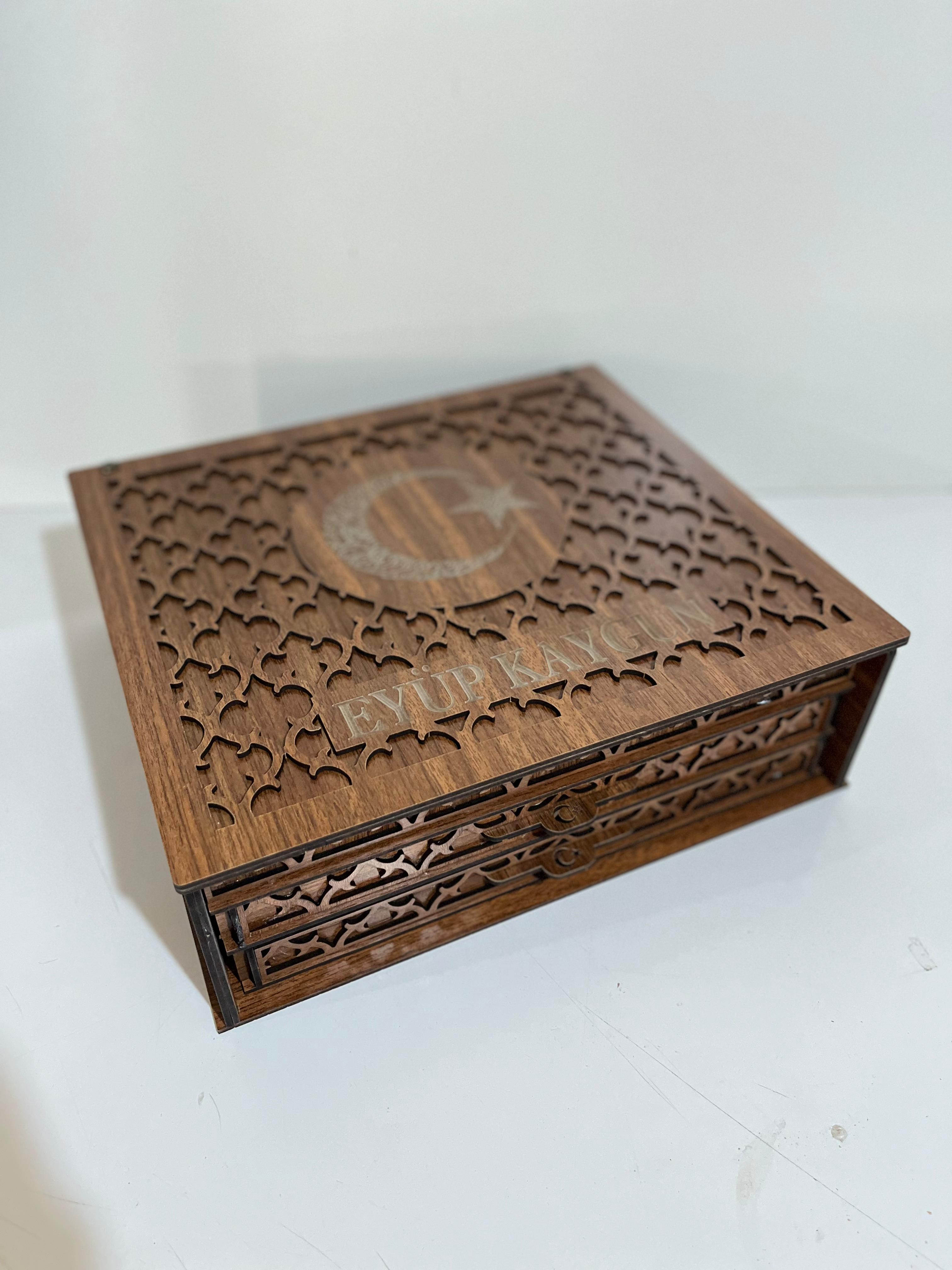 - Ahşabın doğal dokusu ve sıcak tonları ile estetik bir görünüm sergileyen bu kutu, hem şıklığı hem de dayanıklılığı bir arada sunar.