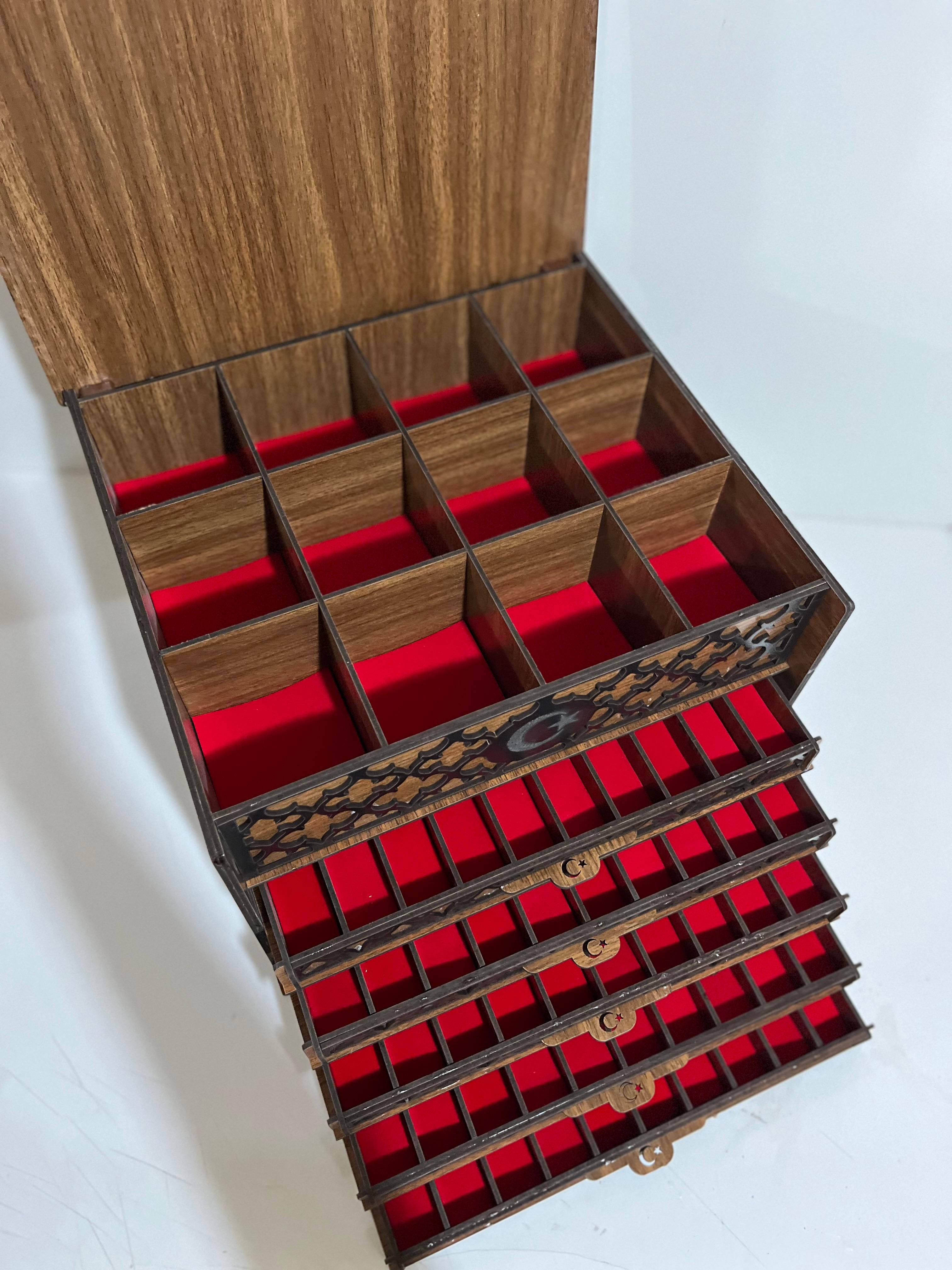- - Ahşabın doğal dokusu ve sıcak tonları ile estetik bir görünüm sergileyen bu kutu, hem şıklığı hem de dayanıklılığı bir arada sunar.