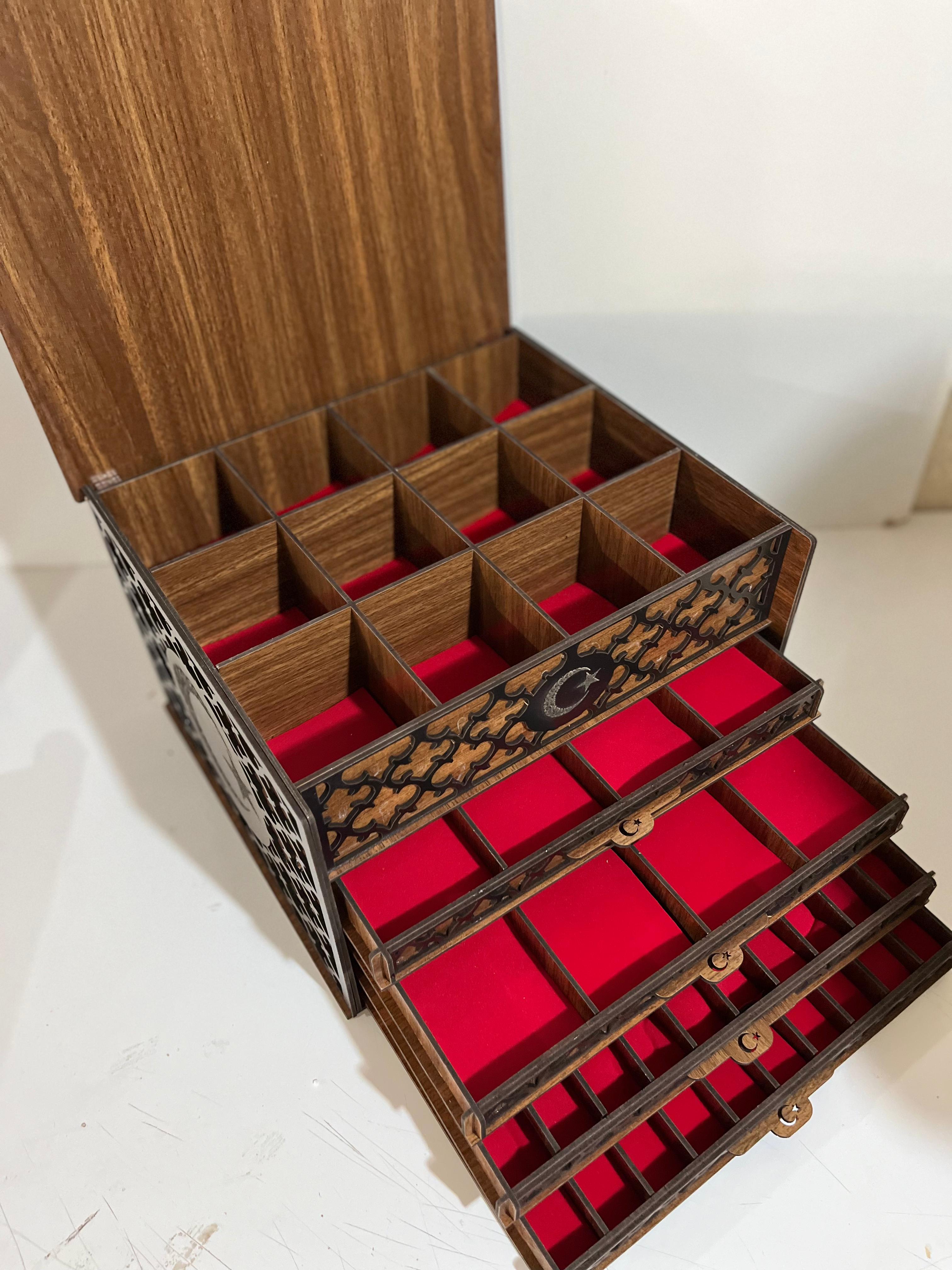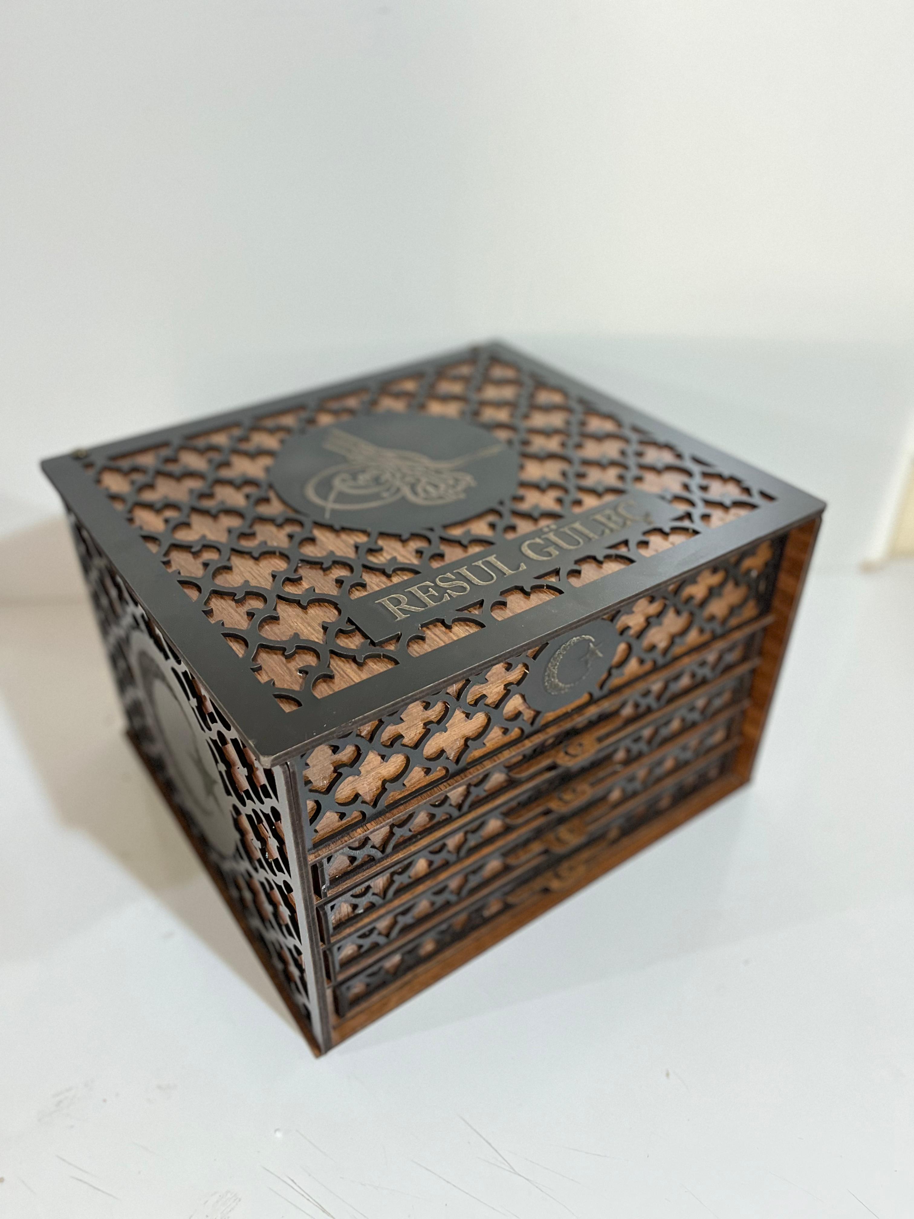 - Ahşabın doğal dokusu ve sıcak tonları ile estetik bir görünüm sergileyen bu kutu, hem şıklığı hem de dayanıklılığı bir arada sunar.